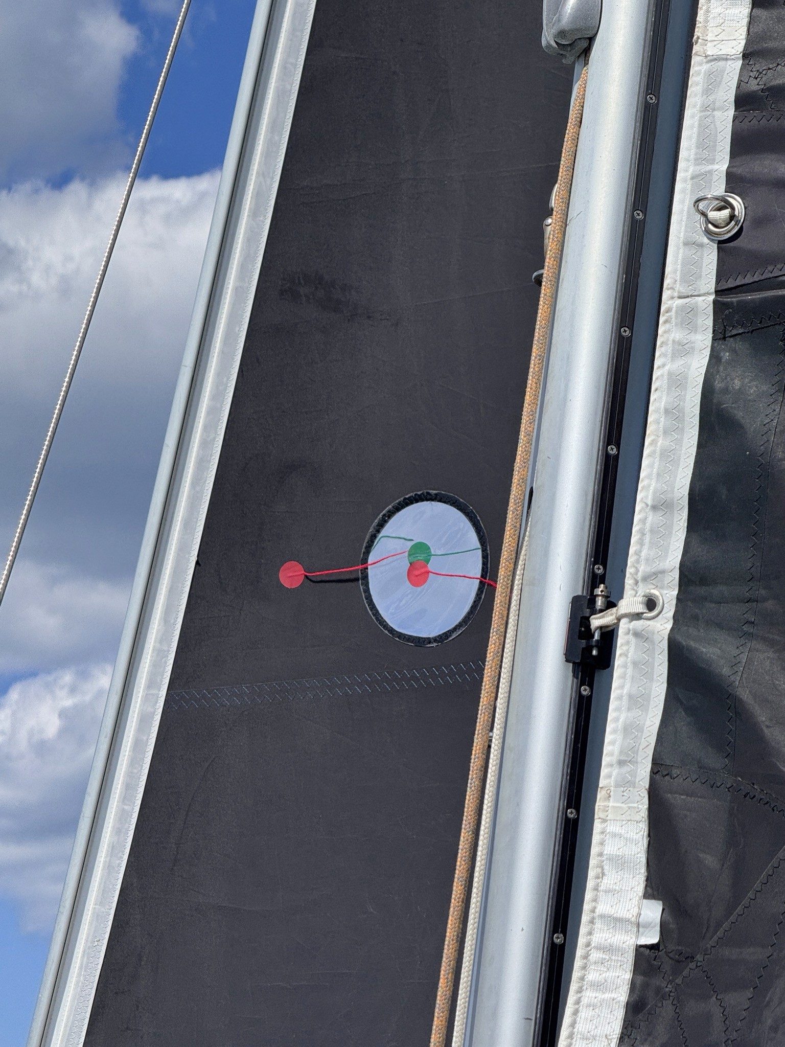You’re hove-to — stable and drifting slowly. Take a break, snack or reef the main.
