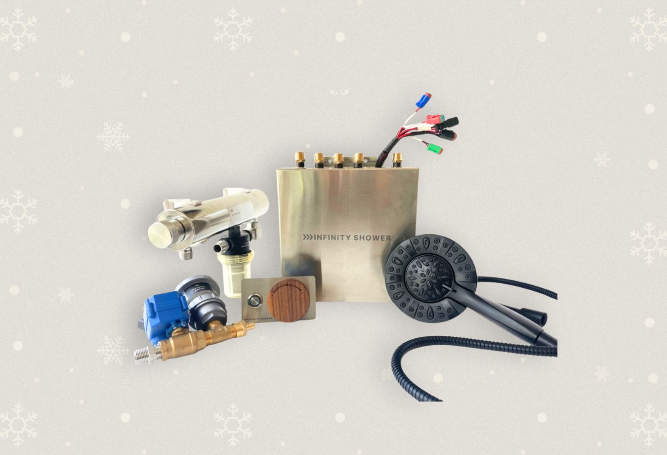 The Infinity Shower is a recirculating shower system for boats and vans. Now you can enjoy an endless hot shower using less than a gallon of water.