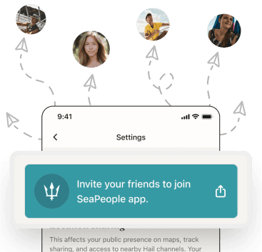 SeaPeople was built around the human needs of boating. It is so much more fun with friends. Invite them with various invite links in the app.