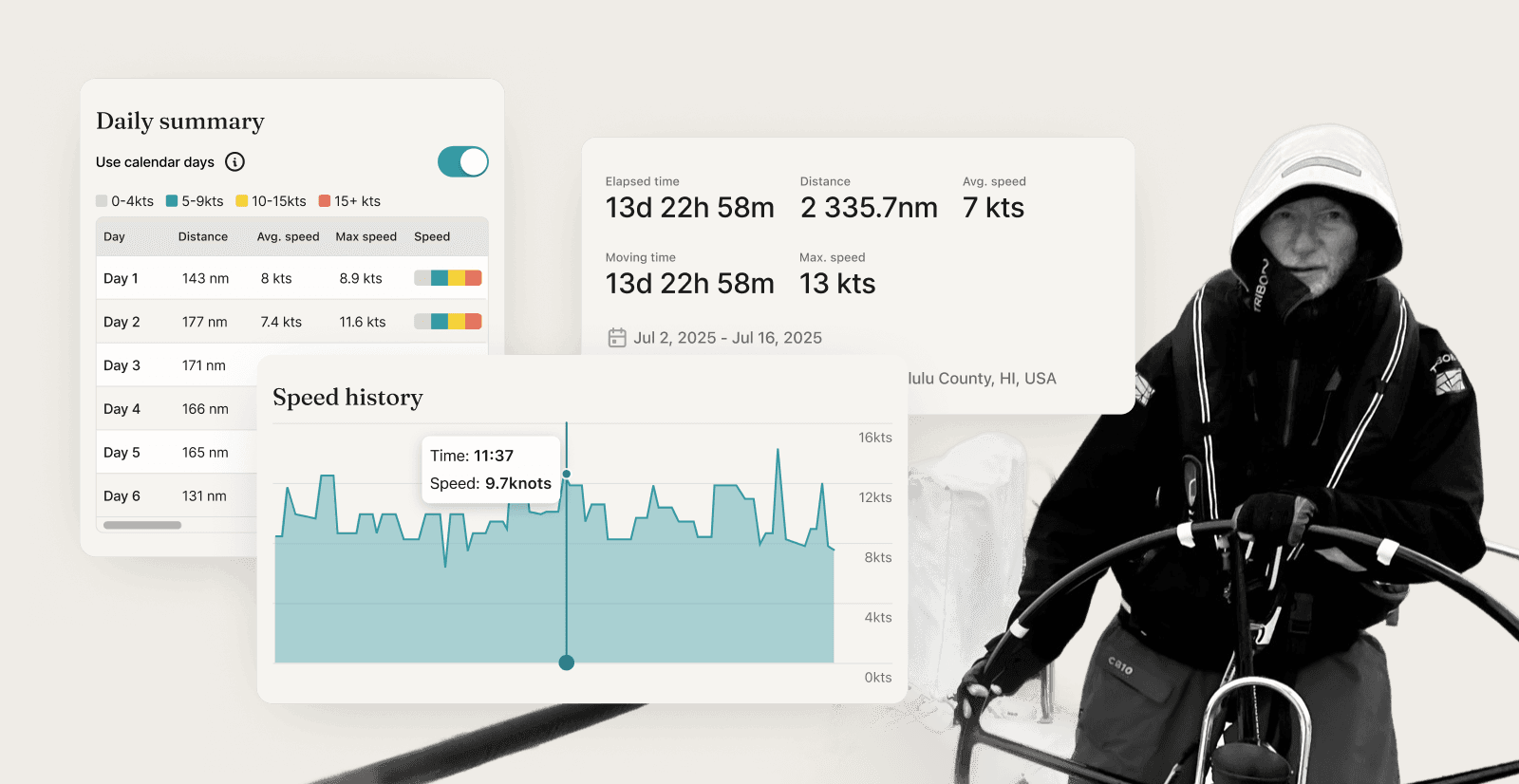 SeaPeople PLUS makes it easy to log the journey and share mid-track updates with friends and family. It's become part of our routine. And a log we enjoy revisiting.
